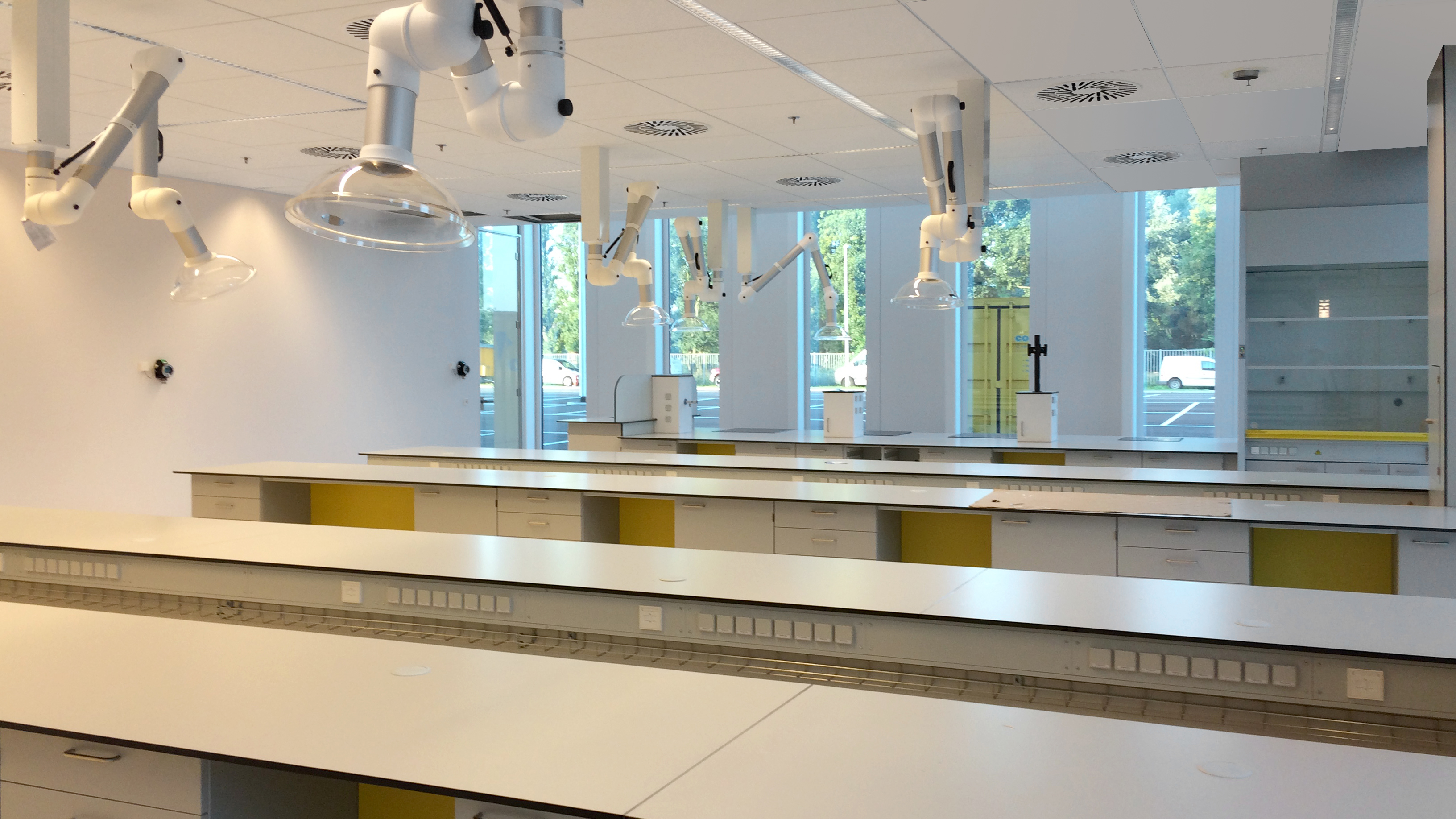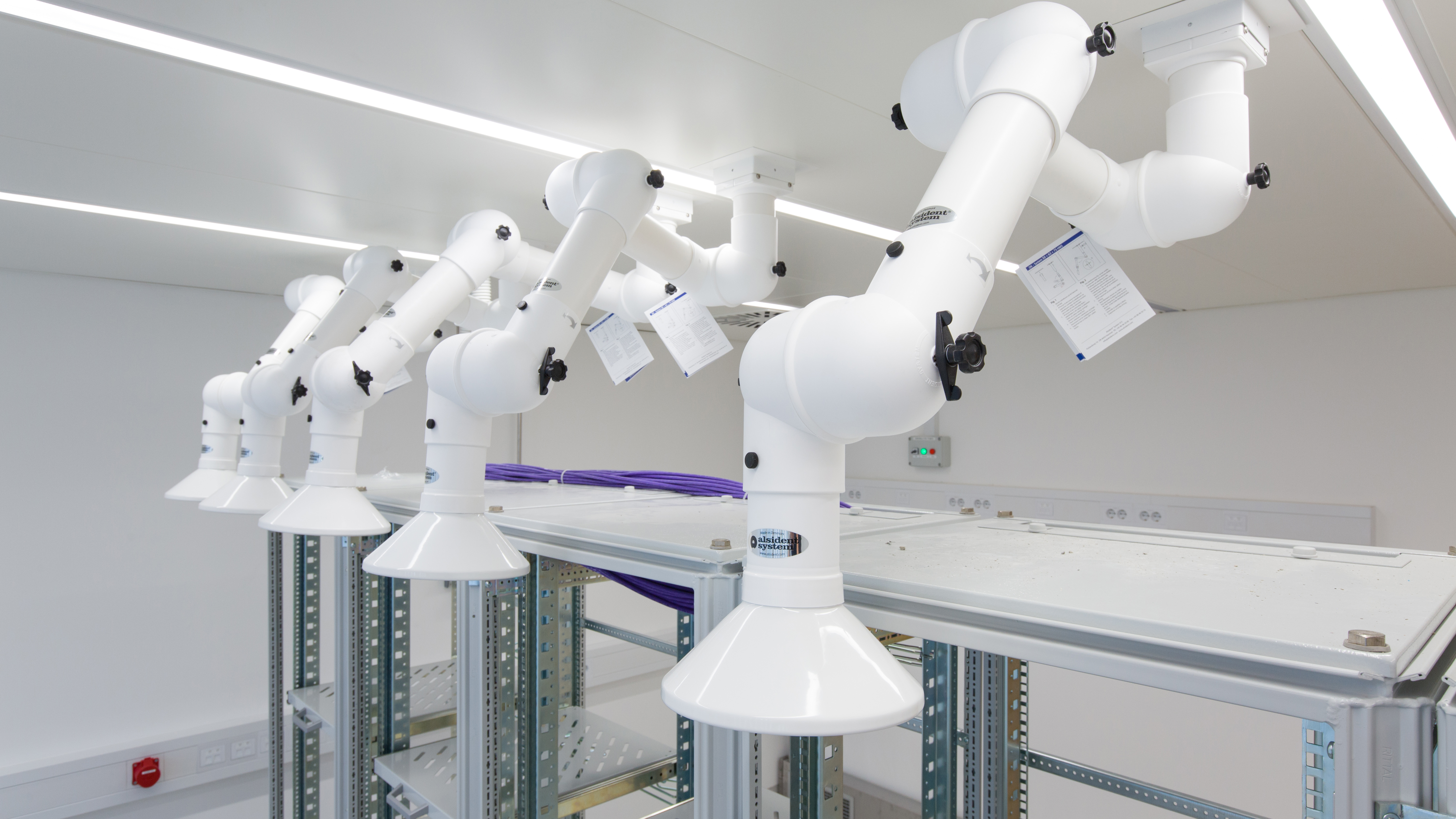 In een laboratorium is het van belang dat dampen en gassen op een juiste manier worden afgevoerd. Er zijn diverse systemen beschikbaar voor verschillende doeleinden: een flexibele afzuigarm, afzuigkap en een vast afzuigpunt.