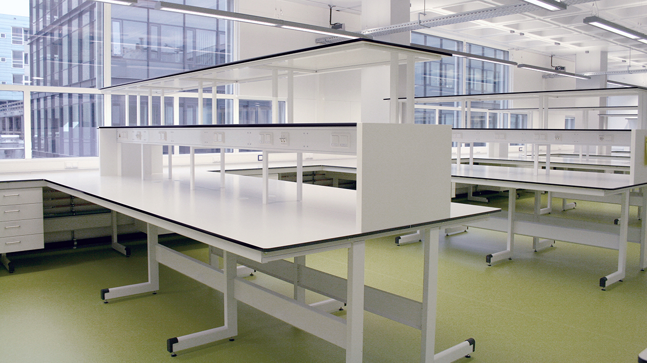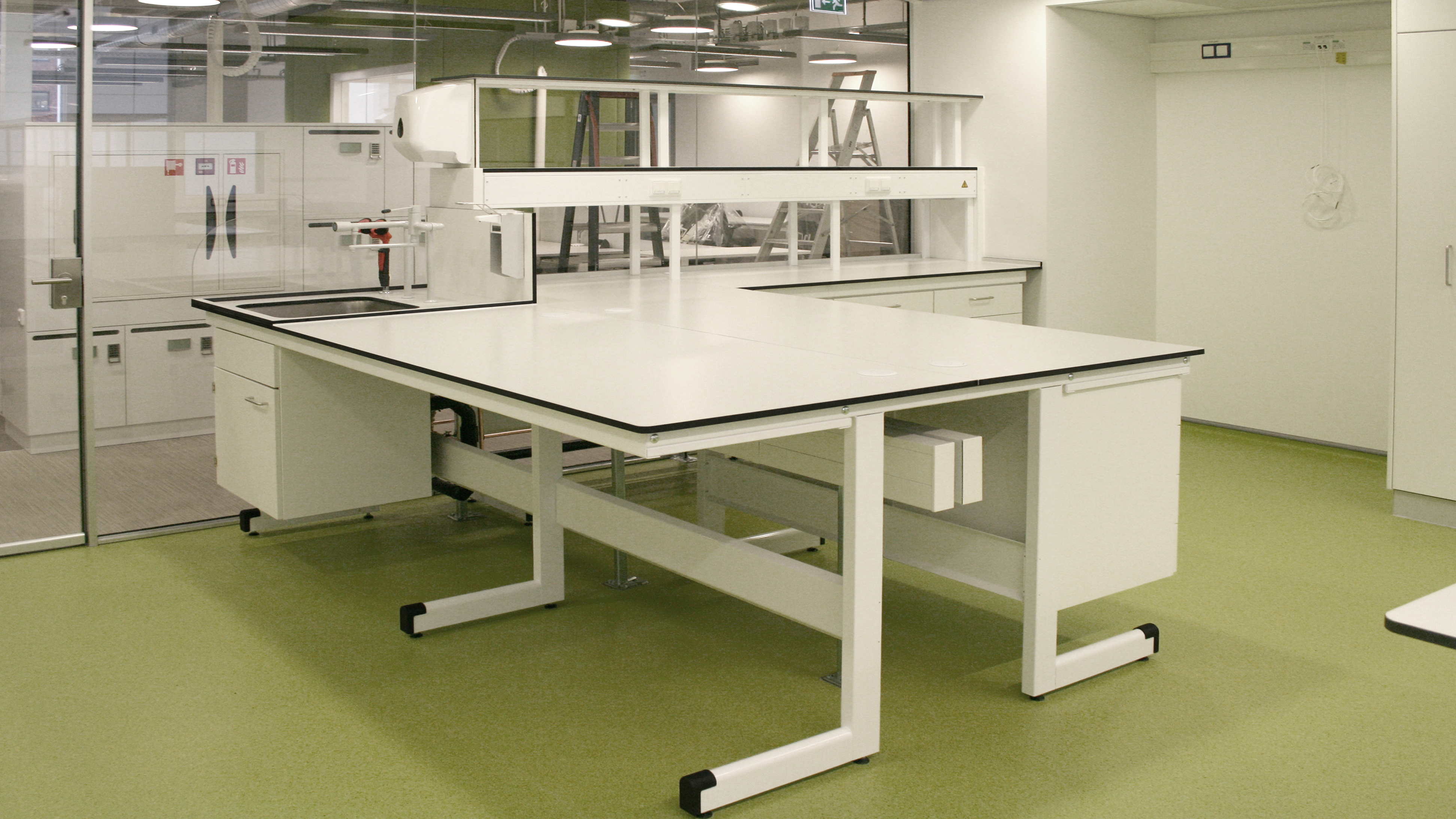 Een C-frame is flexibel. Wanneer je al vaste onderkastjes hebt, kunnen deze prima naast dit type onderstel worden geplaatst. Ook biedt een C-frame extra plaats om te zitten: de C-vormige, roestvrijstalen poten vormen geen obstakel bij zittend werk en bieden daarnaast de mogelijkheid om kastjes boven de poten door te hangen of te verschuiven. Als er extra eisen worden gesteld aan het schoonmaken, zoals in een ML-II lab, kunnen hiervoor voorzieningen aan het onderstel worden aangebracht.