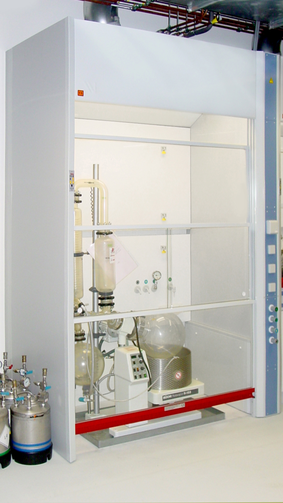 Appendages en elektrische voorzieningen in de drive-in zuurkast zijn bedienbaar vanaf het verticale bedieningspaneel.