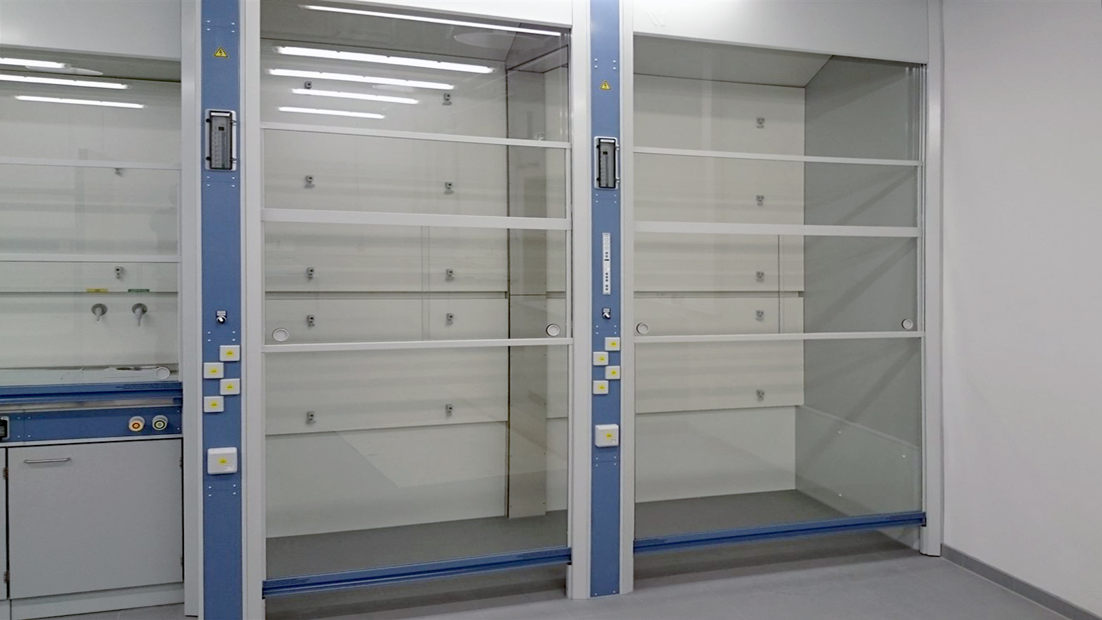 Zoals bij de walk-in zuurkast bestaat het verticale schuifraam uit één stuk, om je optimaal te beschermen tijdens je werkzaamheden. Tijdens het uitvoeren van proeven in de kast kan er door de horizontale schuiframen gewerkt worden, zodat het verticale schuifraam gesloten blijft.