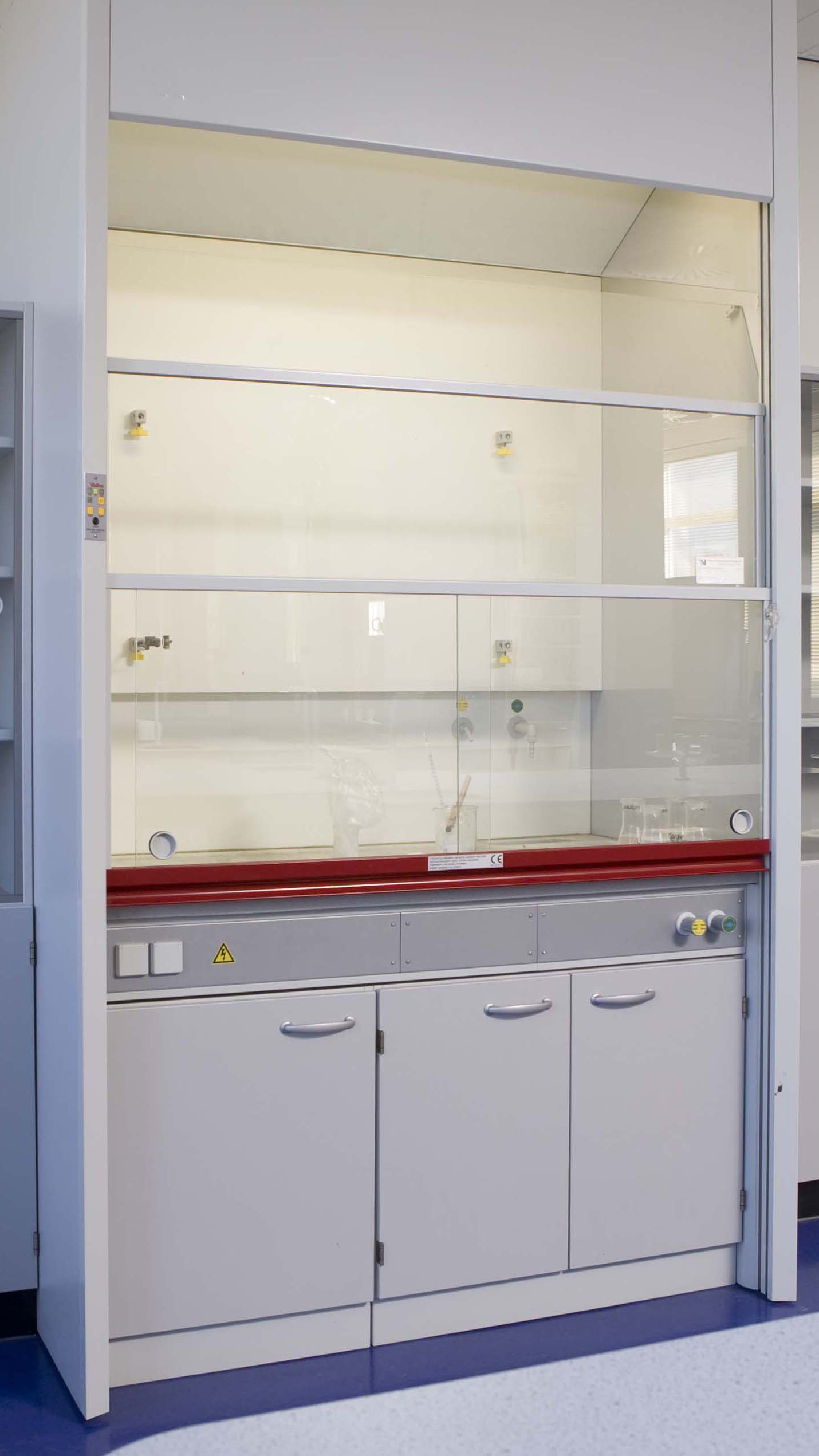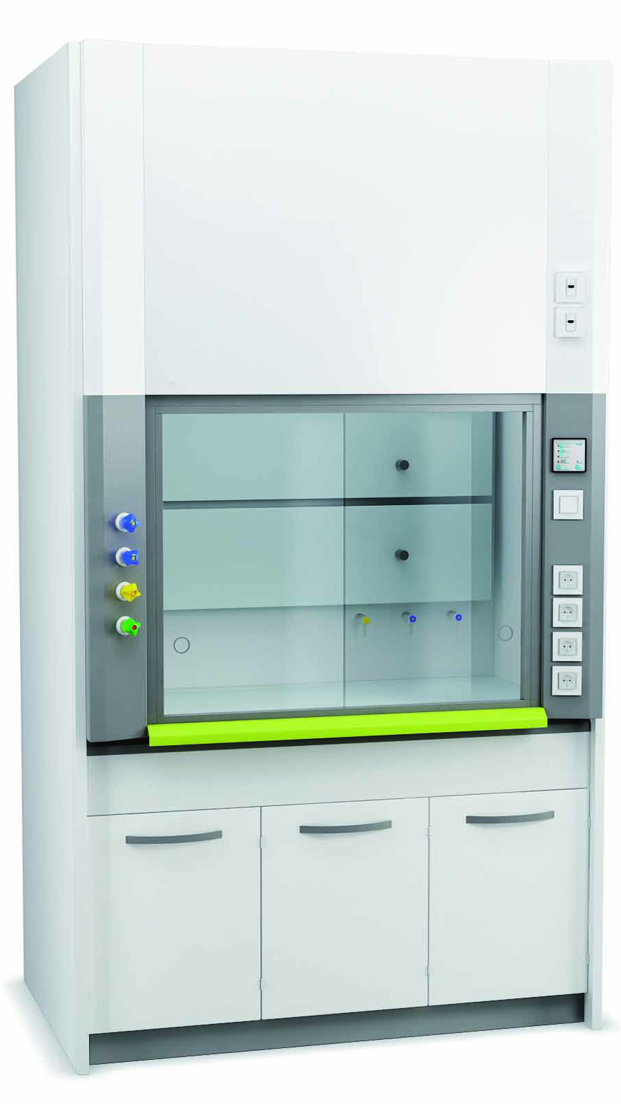 Het zeer bestendige Steinzeug wordt het meeste toegepast voor werkbladen, maar andere materialen zoals Volkern, Corian en polypropyleen behoren ook tot de opties. De standaard zuurkast wordt vast gemonteerd en moet op een extern afzuigsysteem aangesloten worden. Door het ontwerp ontstaat in de zuurkast een luchtwals, zodat gassen en dampen niet uit de kast kunnen stromen.