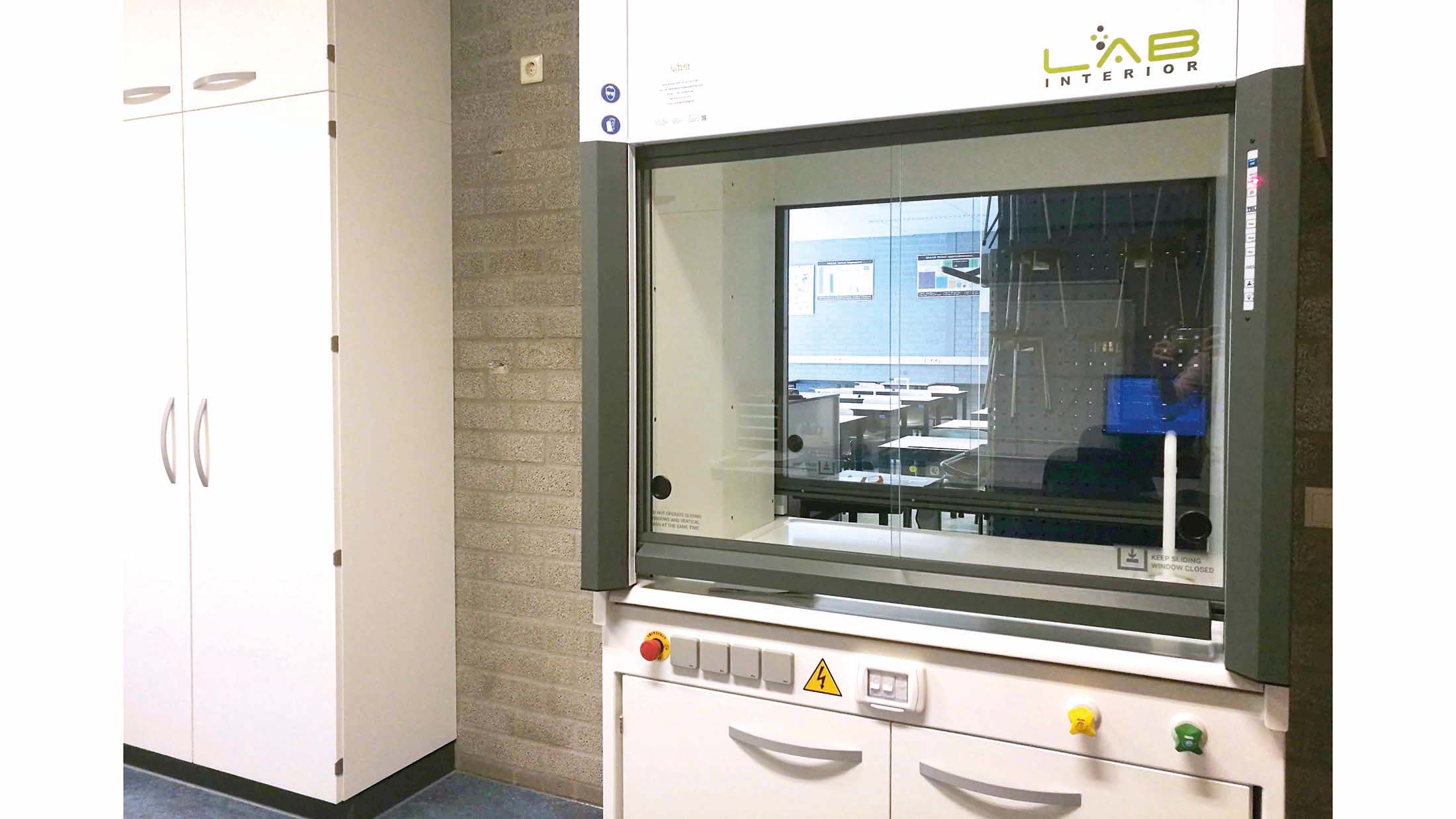 Een zuurkast is een speciale werkruimte met geforceerde afzuiging. In de verstelbare werkopening (meestal een schuifraam) wordt blootstelling van jou en je leerlingen aan schadelijke stoffen tot een minimum beperkt.
